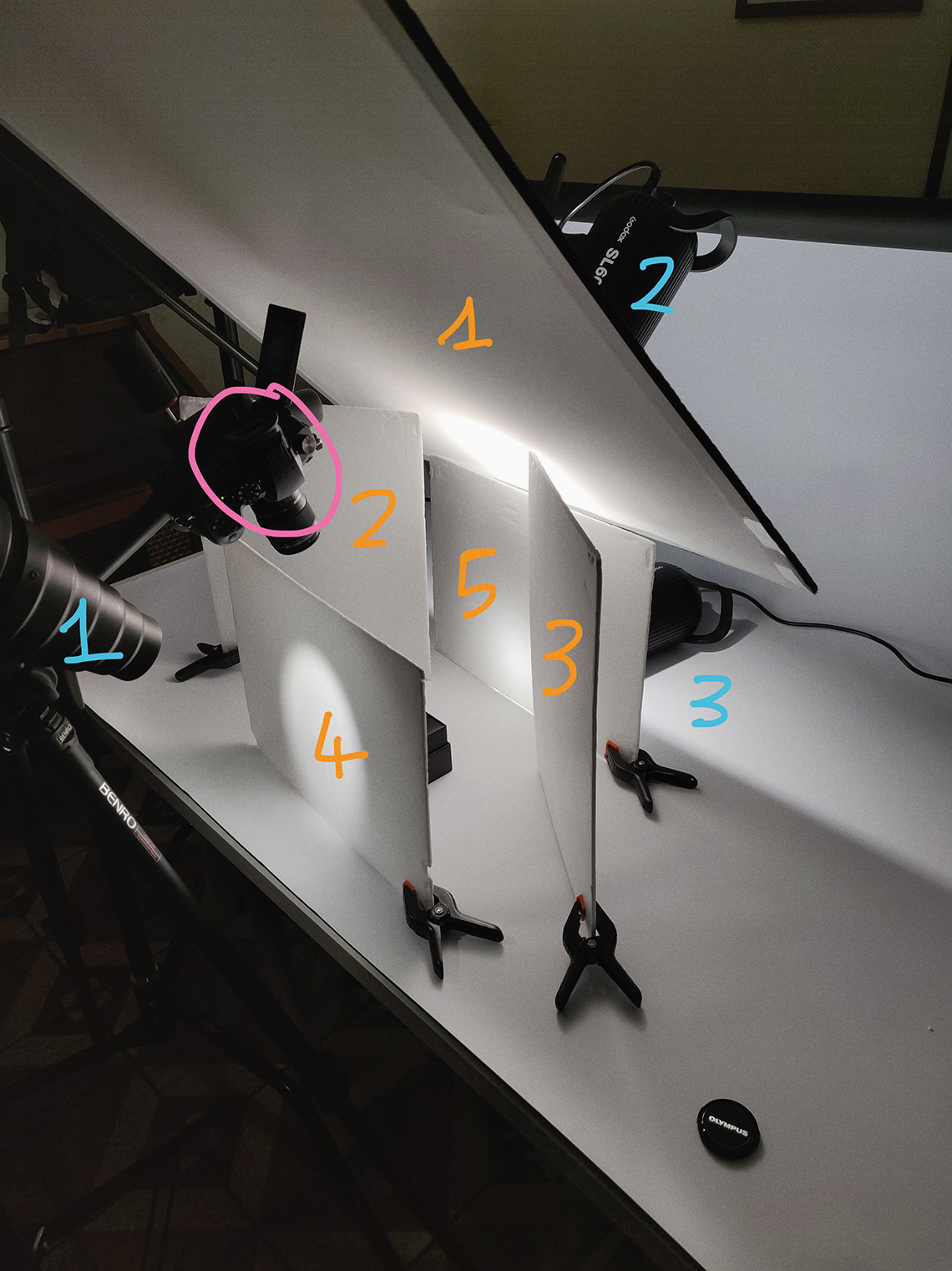 - 4 reflectors - two for the sides, two to diffuse the edge lights